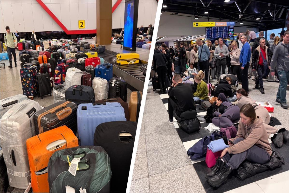 Багаж вперемешку, люди — на полу: житель Архангельска показал, что творится в ШереметьевоВылеты из Москвы массово переносили и отменяли