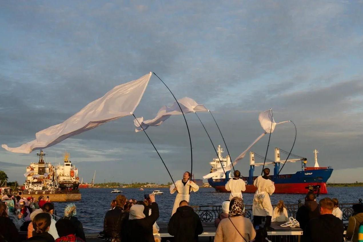 На Красной пристани в Архангельске показывают необычный спектакль: смотрите, что происходит у рекиПерформанс по мотивам народных песен стал частью «Белого июня»