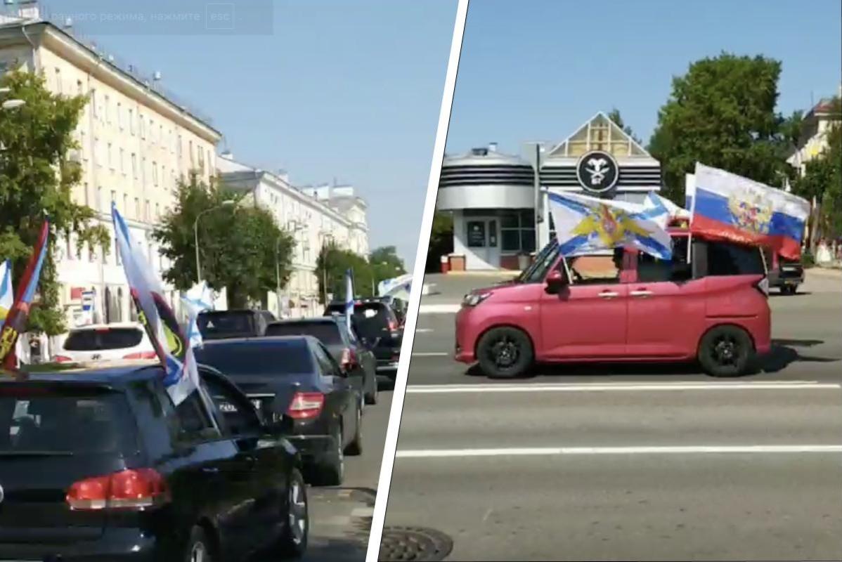 Автомобилисты устроили громкое шоу в центре Северодвинска: смотрите, как они отмечают день ВМФКолонна катается по всему городу