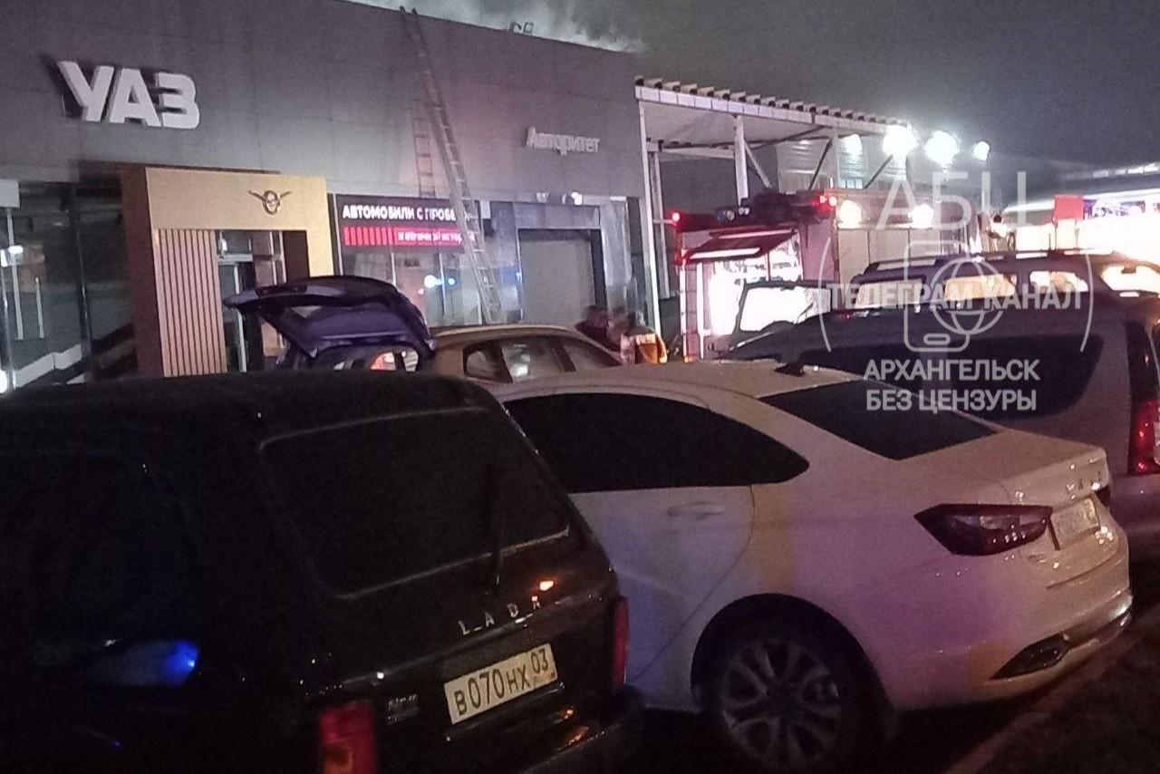 Жители Архангельска заметили огонь и дым у автосалона: что там произошлоУ здания стоят пожарные машины