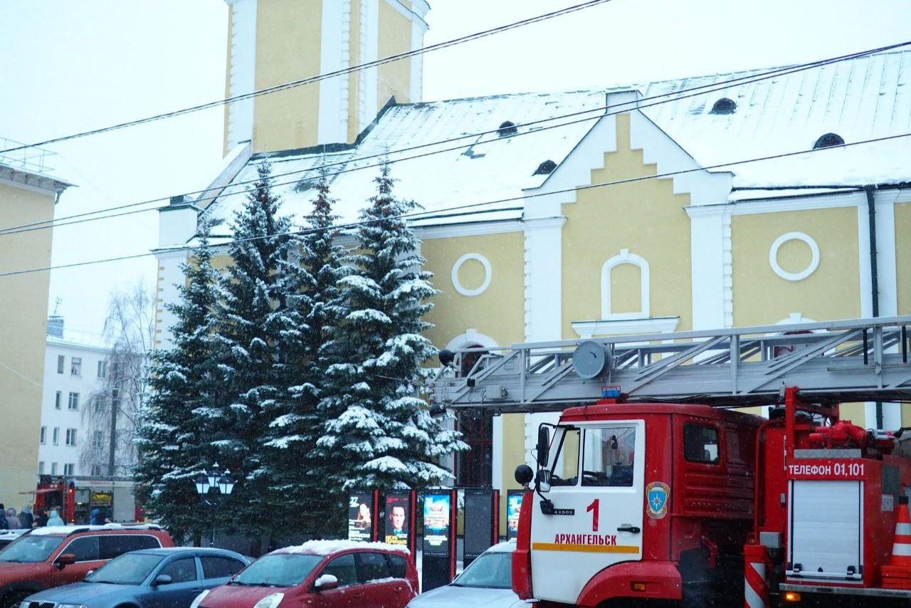 К кирхе в Архангельске съехались пожарные машины: что произошло в здании филармонииЖитель Архангельска сфотографировал эвакуацию сотрудников