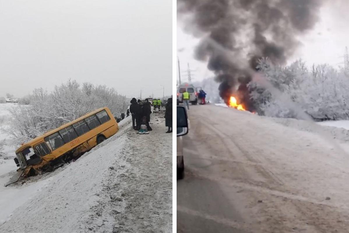 «Люди кричали»: что творилось на месте ДТП, где рядом со школьным автобусом вспыхнула иномаркаОчевидец рассказал про увиденное на трассе под Архангельском