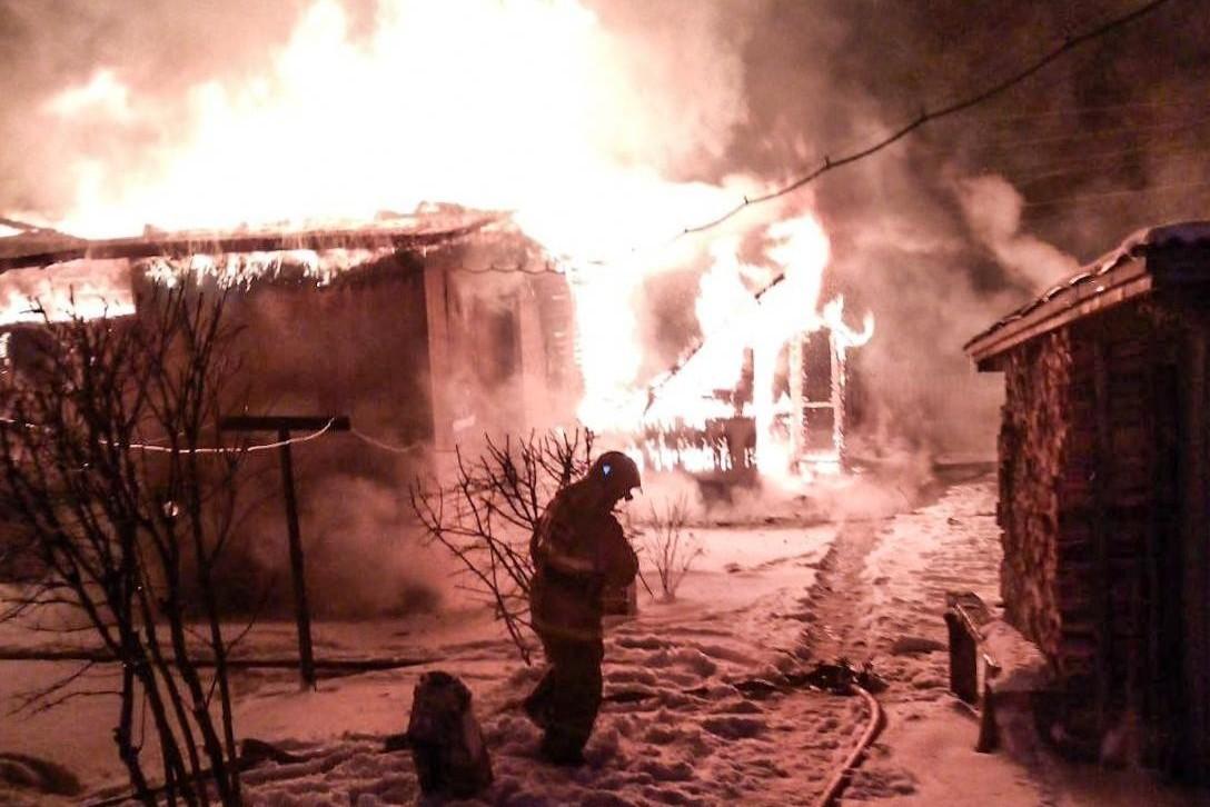 В Архангельской области горел деревянный дом — погиб местный жительКадры с места трагедии