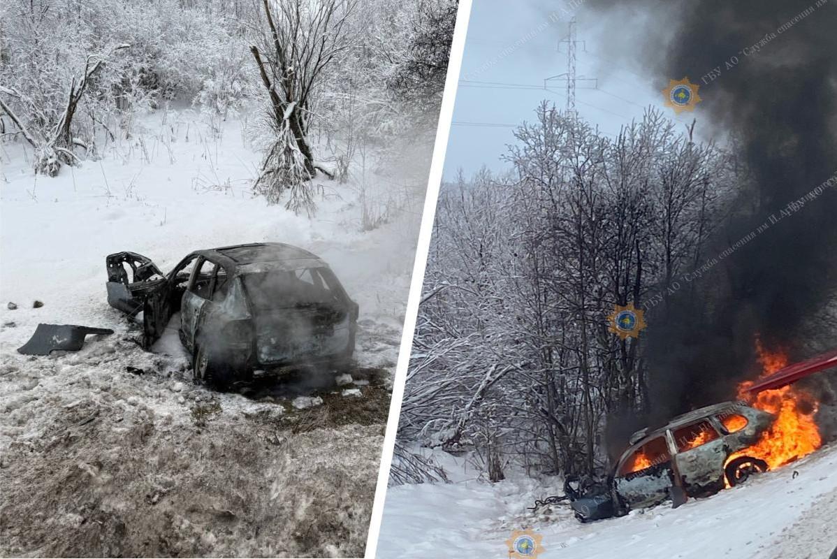 «Мужчина обгорел»: очевидец ДТП под Архангельском рассказал, как вытаскивал людей из PorscheАвтомобиль врезался в школьный автобус и загорелся