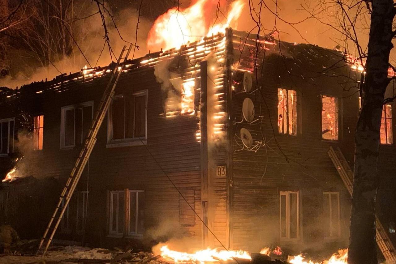 Огонь полностью объял деревяшку: что известно о пожаре в Архангельской областиВозгорание тушат в Плесецке
