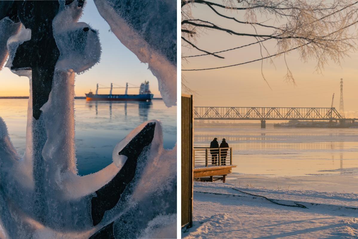 Солнце после тумана. Как выглядел Архангельск в редкую для ноября ясную погодуФоторепортаж с Северной Двины