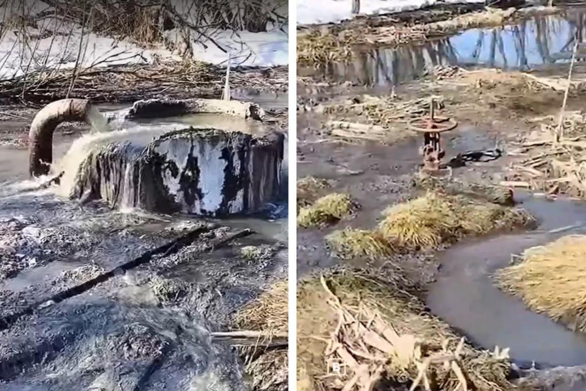 Под Архангельском сняли на видео, как водой из трубы топит территорию у нефтебазыВ РВК прокомментировали этот случай