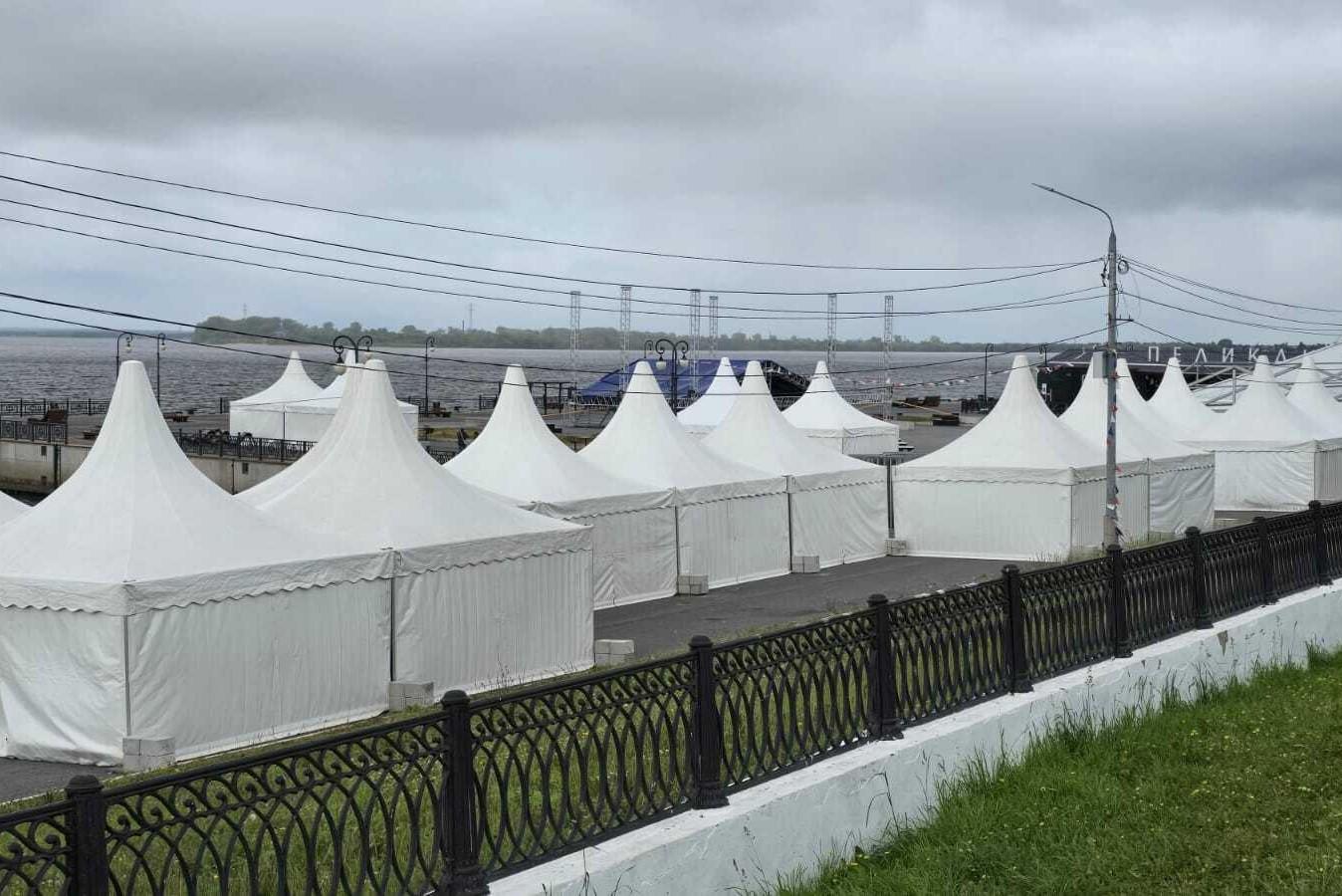 На набережной Архангельска поставили много белых шатров: что в них будут делатьКрасная пристань станет местом международного форума